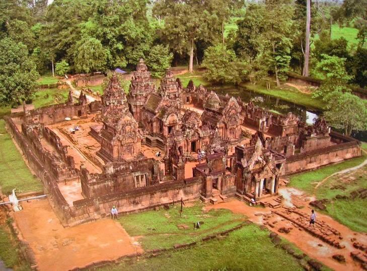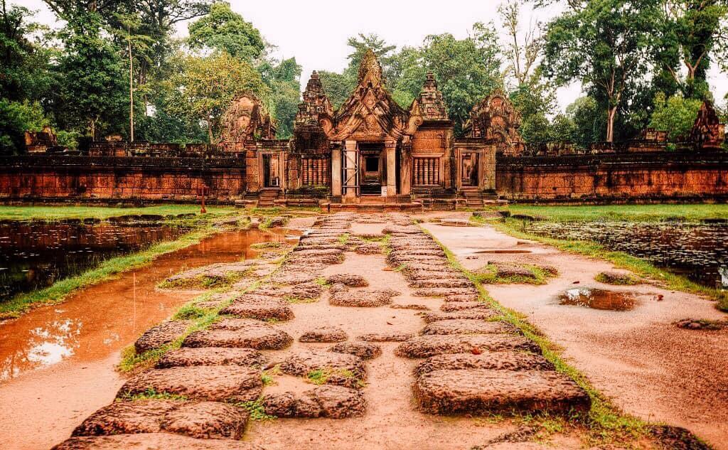 សូមបញ្ជាក់ផងដែរថា ប្រាសាទបន្ទាយស្រី មានទីតាំងស្ថិតនៅស្រុកបន្ទាយស្រី ខេត្តសៀមរាប ចម្ងាយប្រមាណ ៣៩ គីឡូម៉ែត្រពីក្រុងសៀមរាប ជាប្រាសាទតូចមួយ ប៉ុន្តែមានកេរ្តិ៍ឈ្មោះល្បីល្បាញបំផុតក្នុងចំណោមប្រាសាទក្នុងប្រទេសកម្ពុជា ដោយសារតែក្បាច់ចម្លាក់ រចនាល្អឯក និងថ្មពណ៌ផ្កាឈូកដែលបានសាងសង់ឡើងមានសភាពឆើតឆាយដូចស្រីគ្រប់លក្ខណ៍។ ប្រាសាទនេះ មានឈ្មោះដើមថា ស្រីត្រិភុវនមហេស្វរៈ ត្រូវបានចាប់ផ្ដើមសាងសង់ឡើងដោយព្រះរាជគ្រូព្រាហ្មណ៍ម្នាក់ឈ្មោះថា យជ្ញវរហ នាអំឡុងសតវត្សរ៍ទី១០ ក្រោយរជ្ជកាលព្រះបាទ រាជឥន្ទ្រវរ្ម័នទី២ (រវាងគ.ស ៩៤៤-៩៦៨) និងកសាងរួចរាល់ជាស្ថាពរក្រោមរជ្ជកាលព្រះបាទ ជ័យវរ្ម័នទី៥ (គ.ស ៩៦៨-១០០១) ដើម្បីឧទ្ទិសថ្វាយដល់ព្រះសិវៈ។